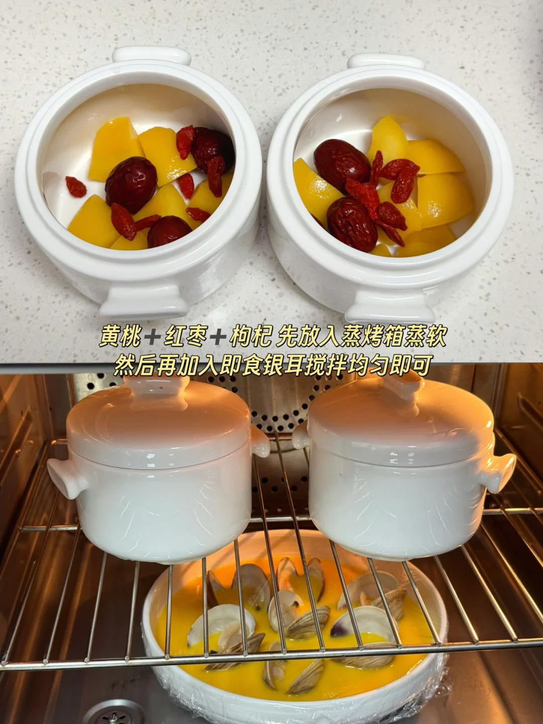 [二R]美贝蒸蛋:鲜美滑嫩的鸡蛋羹拌米饭 孩子最爱吃了!蒸蛋和银耳羹用蒸烤箱一锅出就很方便!