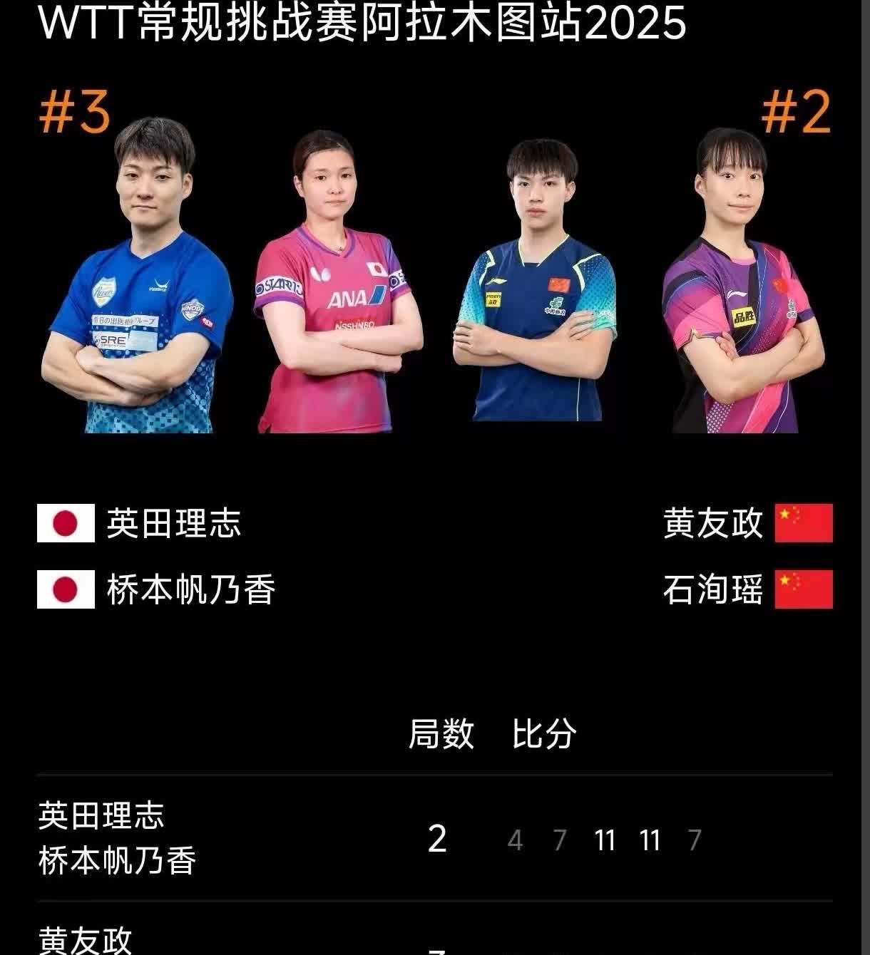 太棒了!桥本帆乃香尝到失败的滋味! 昨天石洵瑶/黄有政3:2击败了桥本/英田, 进入了决赛, 决赛对手是薛飞/老钱。 桥本最大问题是太贪污, 和张本美和犯了同样错误, 27岁高龄还兼三。 所以今晚很可能被徐奕拿下, 不信你们等着瞧!