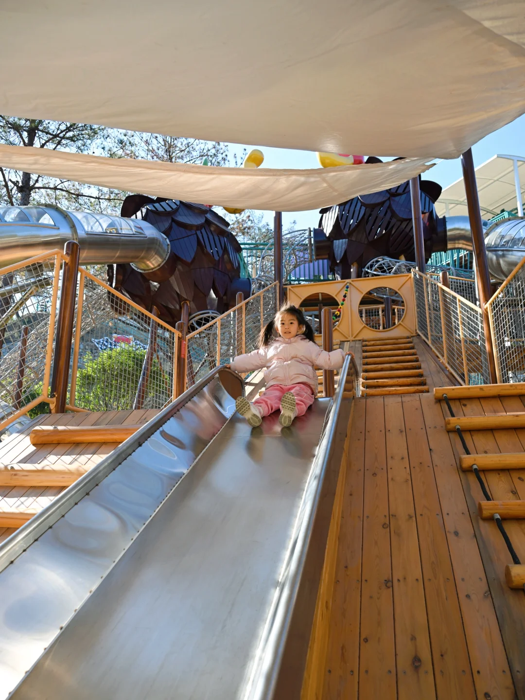 女儿到这里就走不到道啦!!有沙地、滑滑梯、爬网等,小朋友的天堂