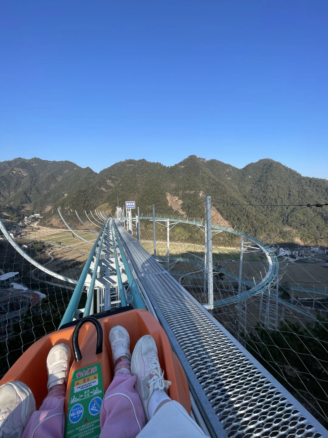 路极飞车终点就是悬崖过山车起点!超长的山地架空轨道,可以自己控制车速的过山车,真的太酷啦!!可以无限次坐哦,女儿求着连坐了3次