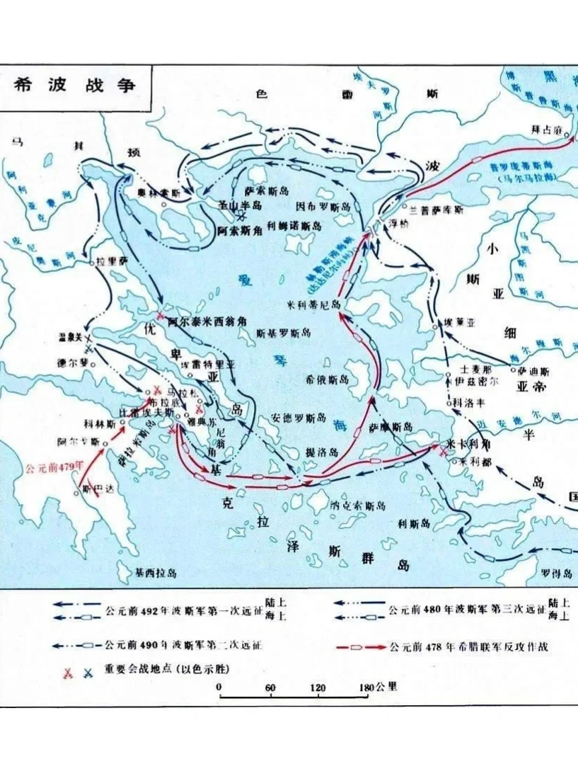 但让雅典真正实现霸主地位的,还是希波战争。从公元前499年到公元前479年,波斯三次进攻希腊均已失败告终。此后,雅典成立提洛联盟,在克蒙领导下,帮助小亚细亚各邦脱离波斯殖民,并与波斯签订和平条约。