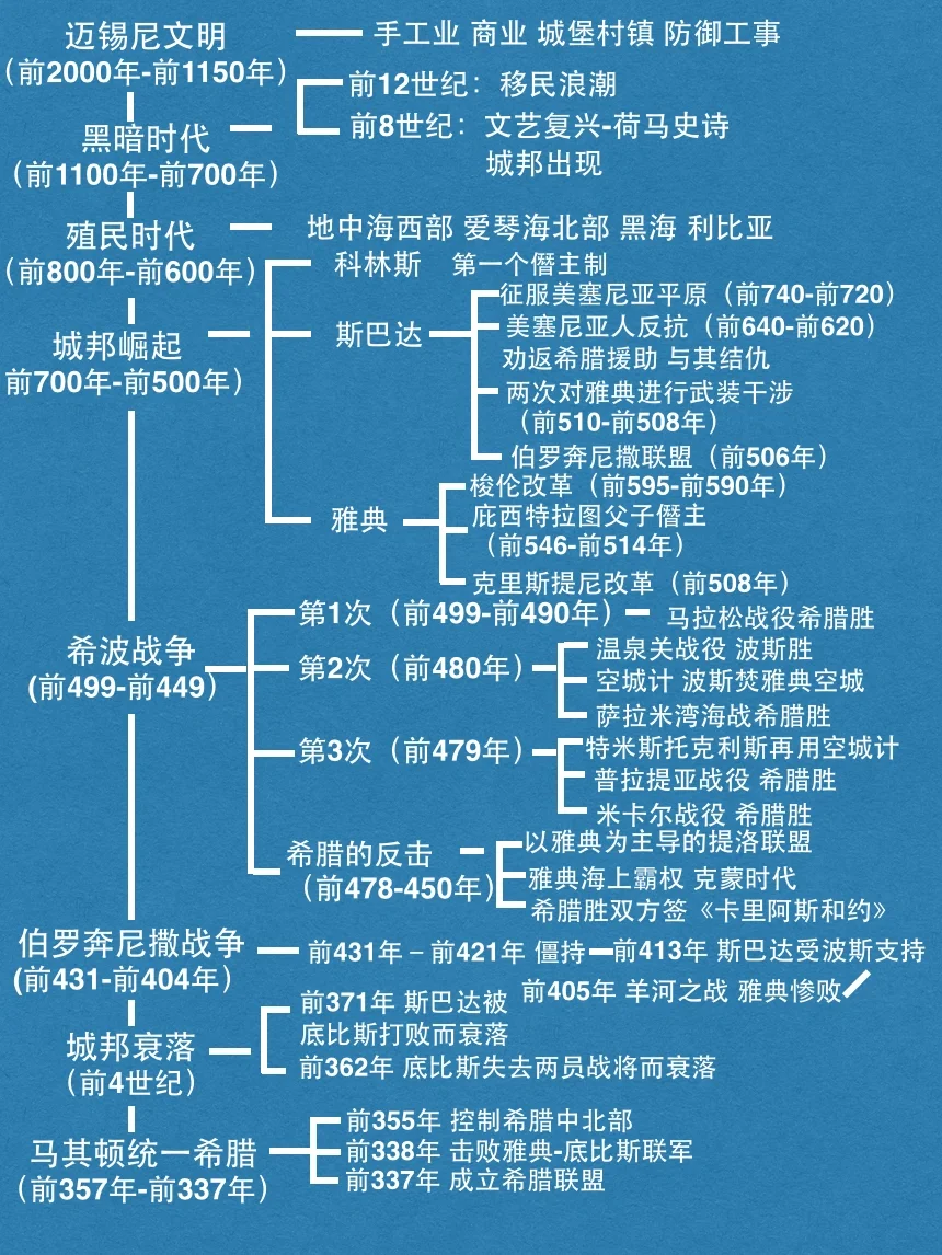 迈锡尼文明瓦解后,遗民遍布希腊,这一时期社会落后、农产低下,被称为黑暗时代,唯一的发展是铁器。但到了公元前8世纪,希腊开始全面复苏。