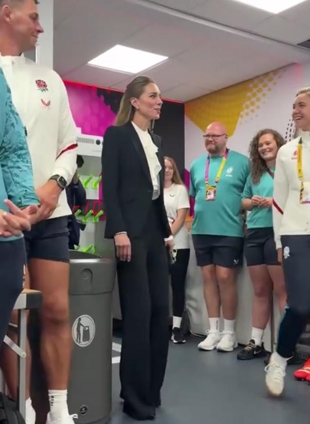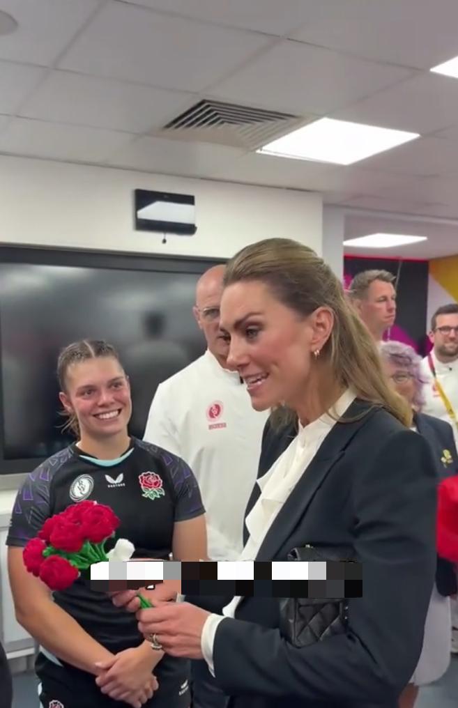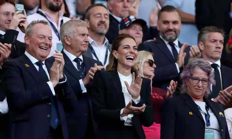 威尔士夫妇在各自赞助的球队观赛[点亮平安灯] 凯特梳着公主头挎着小坤包美美滴现身, 为自己麾下的女子橄榄球队打气, 她懒理假发传言,踩着高跟鞋到更衣室慰问,
