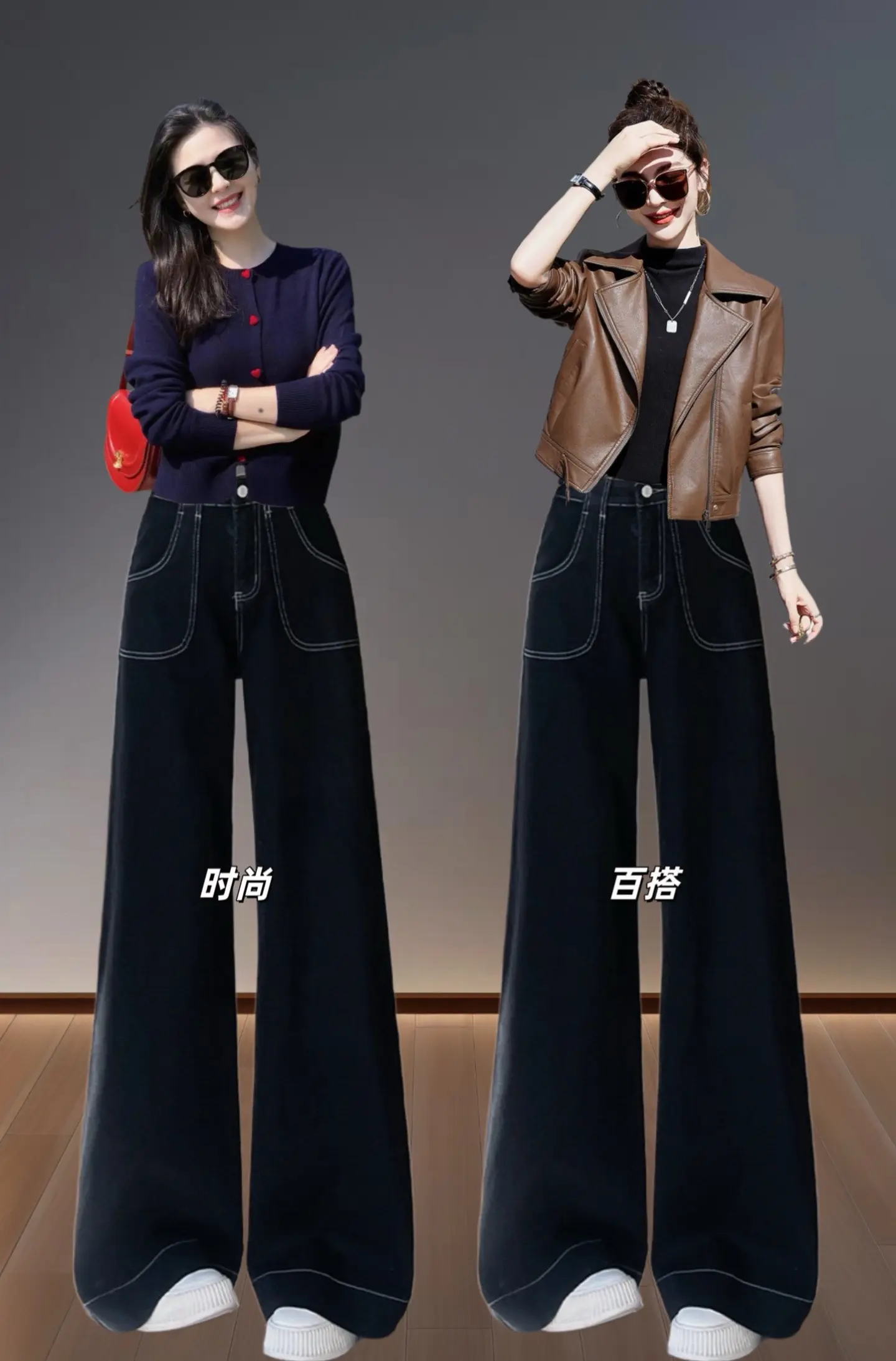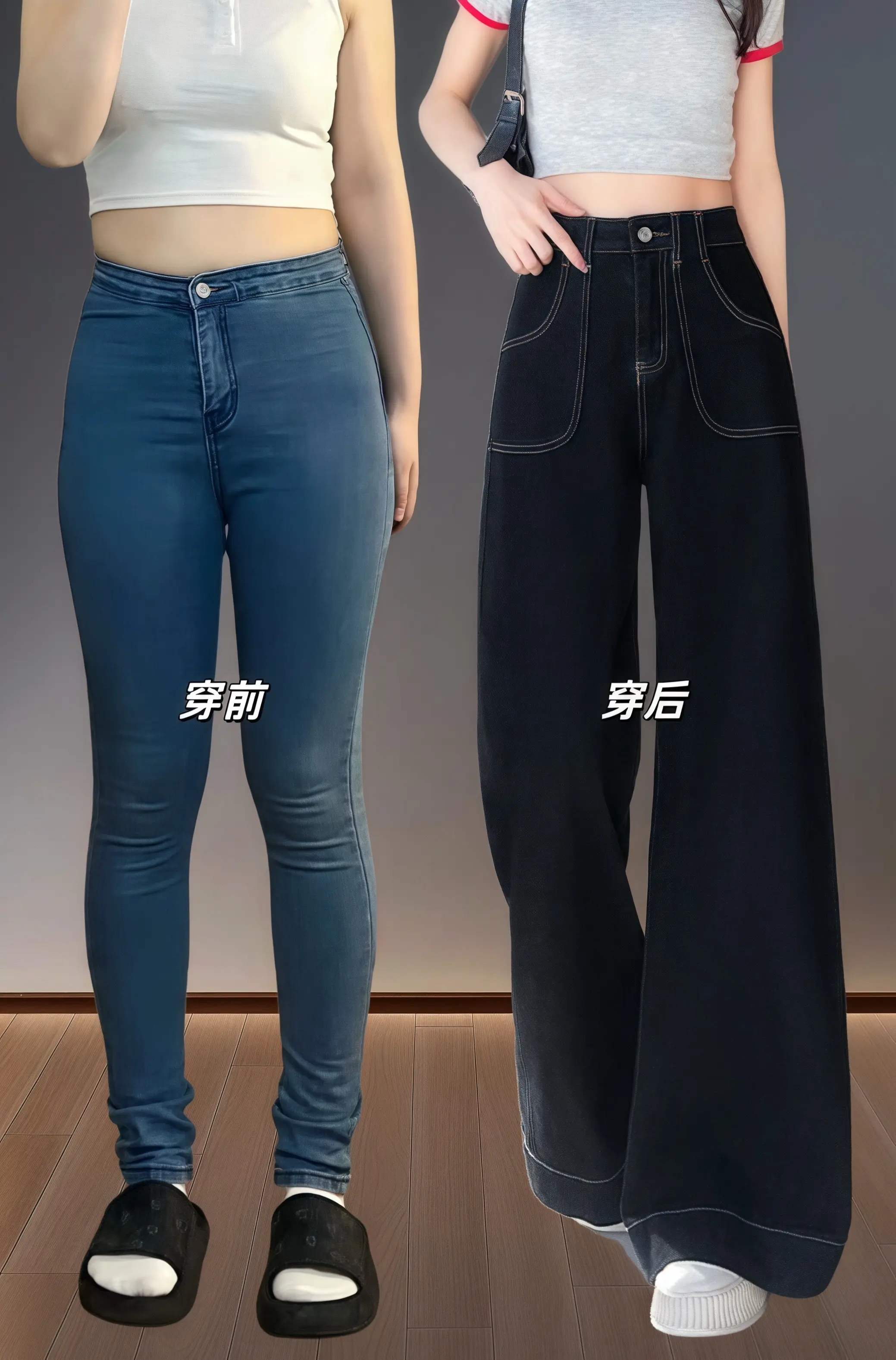 大码女孩的宝藏神裤来啦!这款秋季新款高腰阔腿牛仔裤,显瘦真的一绝, 高腰设计提升腰线,轻松打造“腰以下全是腿”的视觉效果 ,拉长腿部比例。宽松阔腿版型巧妙遮住大腿和臀部赘肉,对各种腿型包容性超强。经典牛仔蓝,百搭又不过时,搭配简约上衣,无论是通勤、日常出行还是聚会,都能自信满满,轻松拿捏时尚感!