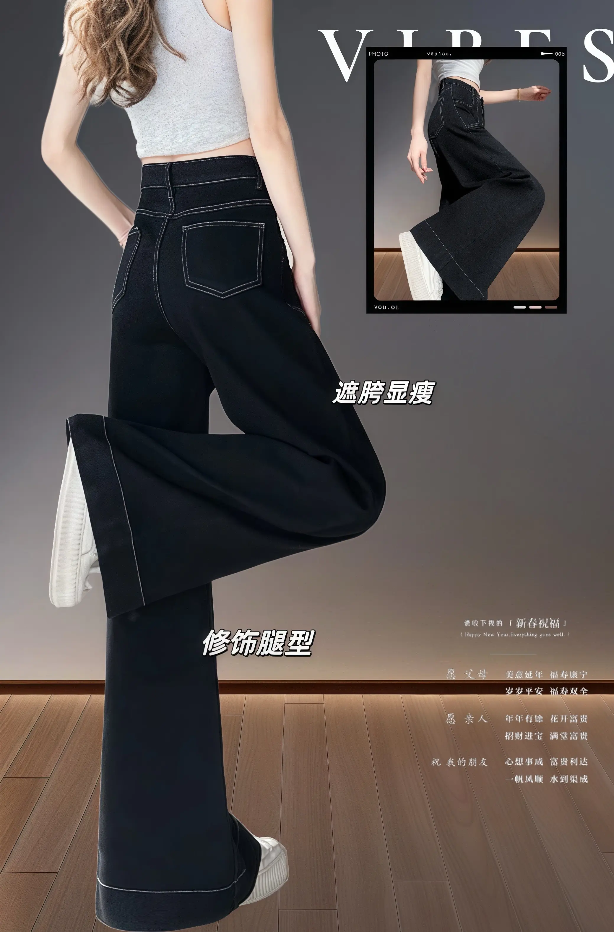大码女孩的宝藏神裤来啦!这款秋季新款高腰阔腿牛仔裤,显瘦真的一绝, 高...