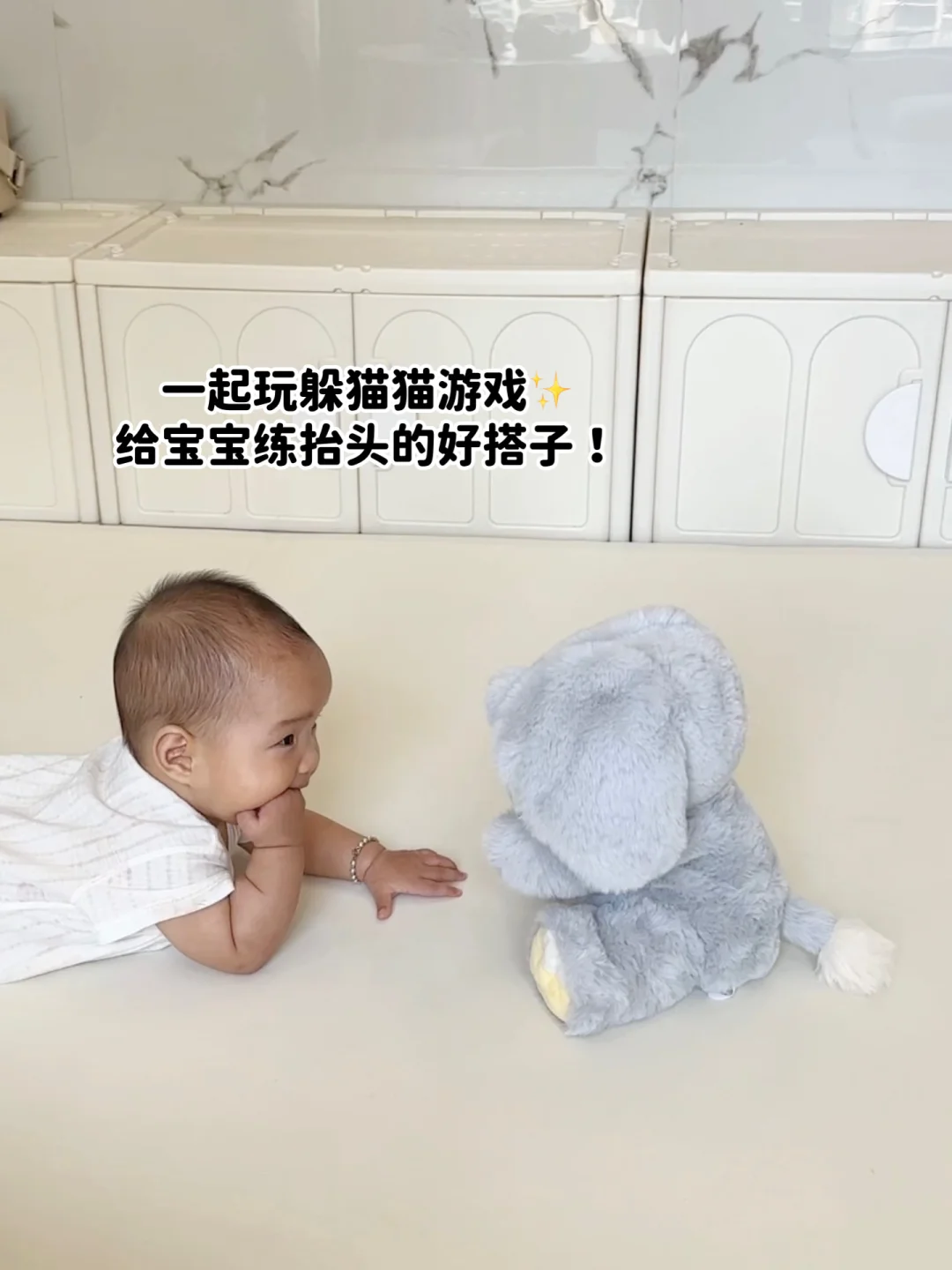 妹妹练抬头那阵子,全靠布布在前面“加油鼓劲”!