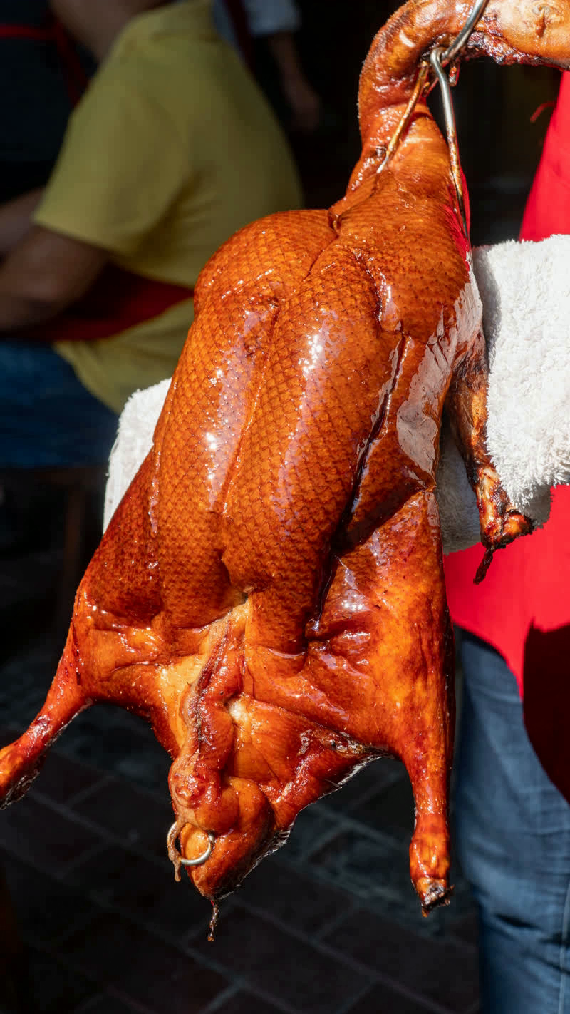 若欲使所制之物色若枣红,仿若吾手制之色,便须留意那炭火炙烤之法,此乃纯天然之古法工艺,不可轻忽。且对于炭材之择选,亦需有所考究。通常情况下,多取荔枝炭为用,只因此炭蕴有馥郁果香,经其炙烤,烧鹅出炉后,色泽愈发诱人,味亦更显香醇。末了,尚需将炙烤之火候与皮水之调配相得益彰,二者相辅相成,方能成就佳肴。
