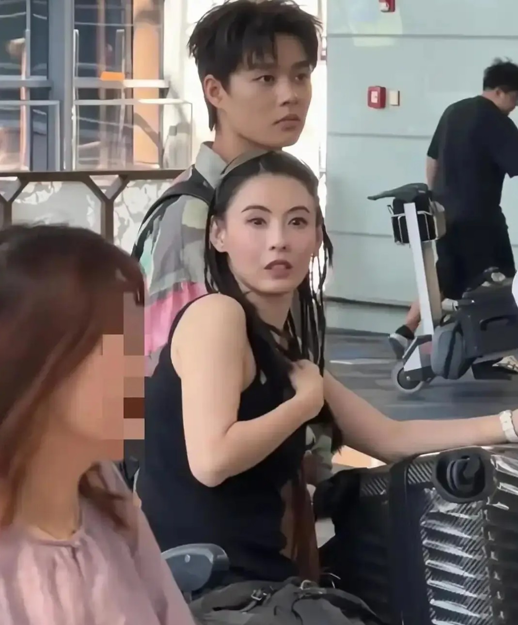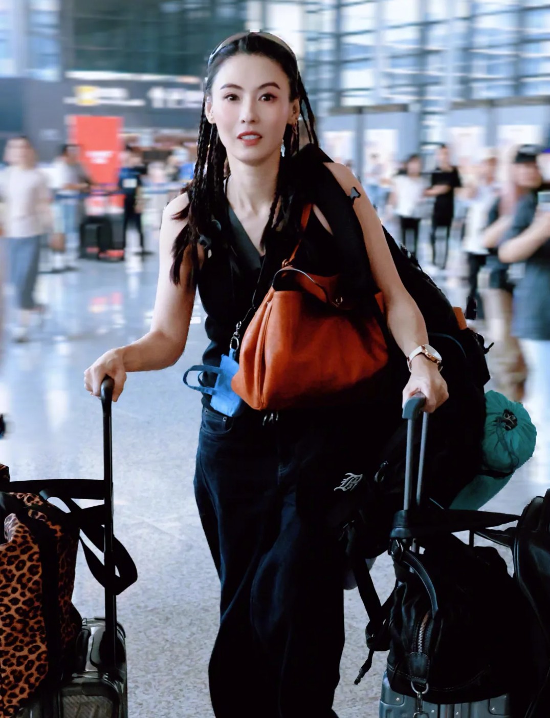 综艺节目《一路繁花2》开始录制了,今年74岁刘晓庆仍然参加,62岁何赛飞,59岁刘嘉玲,53岁宁静,45岁张柏芝,24岁柯淳还有20岁邵子恒。 最瞩目的是张柏芝,可能是第一次录制这类的综艺节目,她带了不少行李大包小包,身上背着,手里推着。 虽然张柏芝背着多个包包,推着多件行李,但是她脸上丝毫没有疲惫感。有现场网友透露,柯淳与张柏芝一起感觉像姐弟,姐姐照顾弟弟那般。张柏芝忙前忙后办理登机手续,经常外出的她表现出游刃有余。 张柏芝穿着黑色吊带下搭宽脚牛仔裤,头顶架着一副墨镜,简单又时尚。最吸眼的是,她的造型,扎了多条小辫(简称:脏辫)。 张柏芝已经生了三个娃了,一颦一笑依然青春灵动,她皮肤白皙光滑。 整体看张柏芝瘦了不少,下巴变尖了。胳膊上一点赘肉没有,手上青筋明显,脸颊略显凹陷,颧骨隆起,混血儿的她拥有一张非常有质感脸。