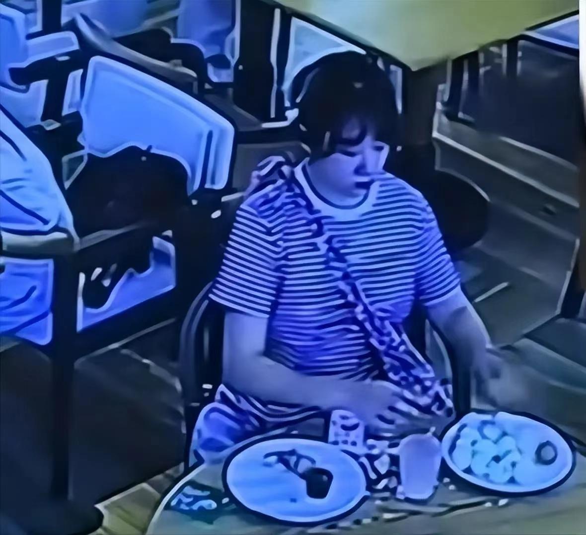 然而,服务员很快发现了她的举动,上前制止说自助餐的食物不能外带。