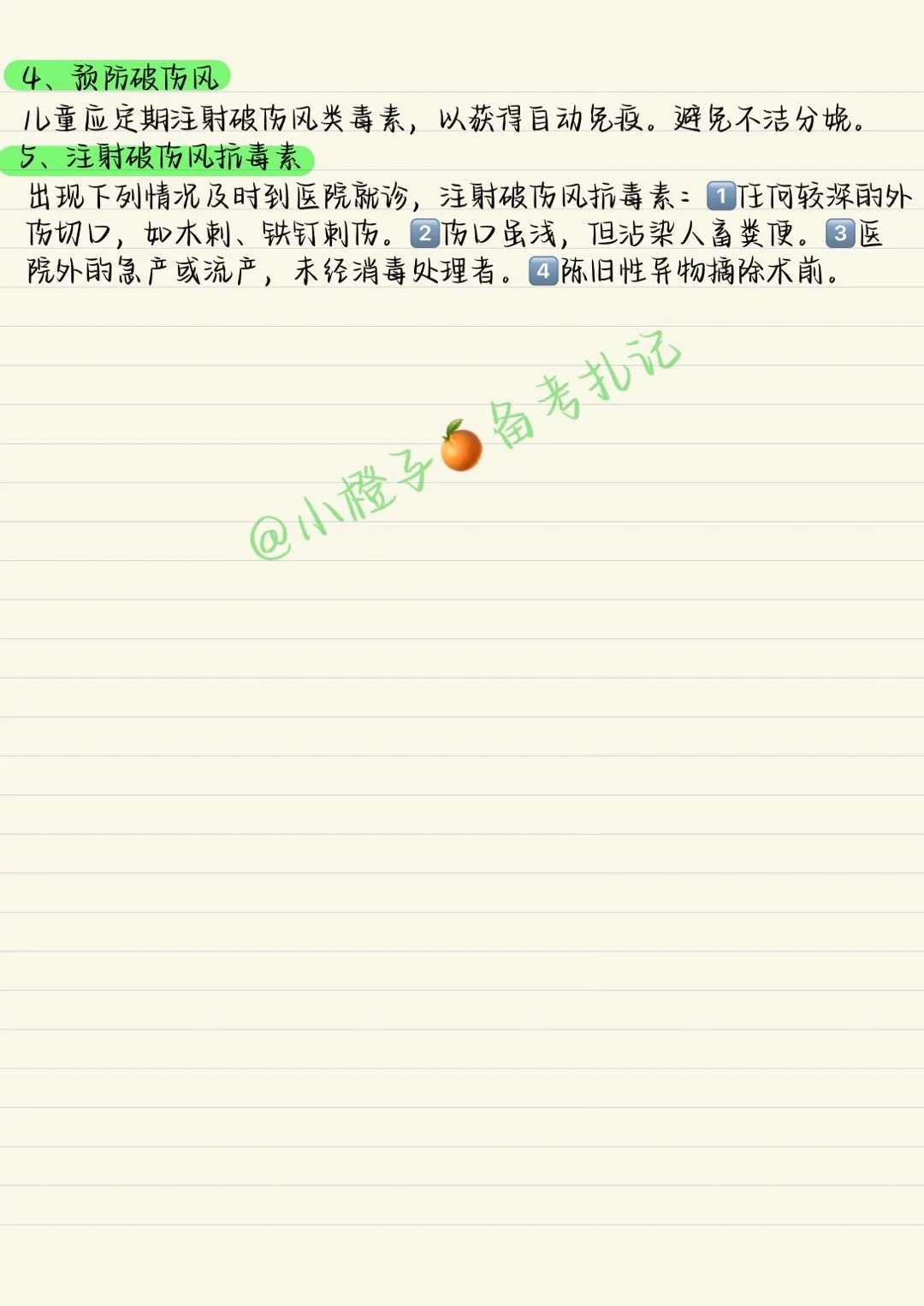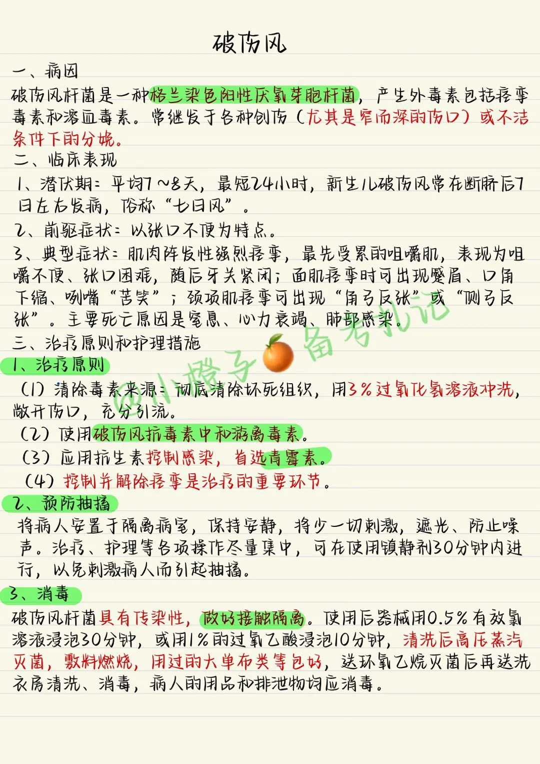 读书笔记打卡 笔记灵感 破伤风 初级护师 实习护士 护士 护理考研 医学生笔记