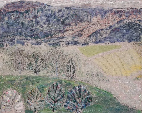 她的画布上常常出现一些安静的瞬间——人物、自然、微妙的光影,甚至只是生活中不经意的一幕。色彩看起来柔和,但其实暗暗涌动着力量。你会觉得画里的场景似曾相识,好像就是你昨天傍晚散步时,突然抬头看见的那片天空,或者某次与朋友对视的片刻。
