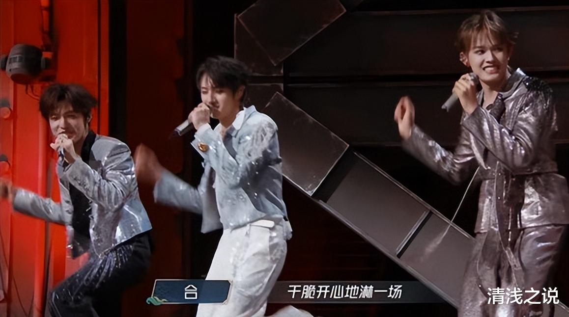 四公选歌时,《彩虹的微笑》出来,哥哥们基本上都是不考虑的,觉得这歌很青春很简单,还是唱跳,不好改编,怕是难拿到好成绩。所以滚烫大哥们最开始选歌时,只有张极选了,但张极也不是因为喜欢这歌,而是没玩明白规则稀里糊涂地选了,待明白过来时来不及改了,索性不组队了,让自己回到备选池,好去别的舞台。然而兜兜转转张极最后还是选了这歌,因为别的舞台只选了TOP登陆少年组合的一名成员左航,TOP弟弟三公排名垫底,最后反选环节,可选择的空间不大,张极基本没得选,朱志鑫和苏新皓想去《人间惊鸿客》得成全,只能去《彩虹的微笑》了。