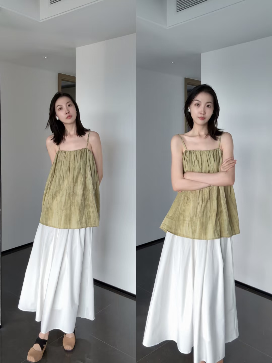 绿色吊带:UR(夏天穿超级舒服!薄薄一层还不透)