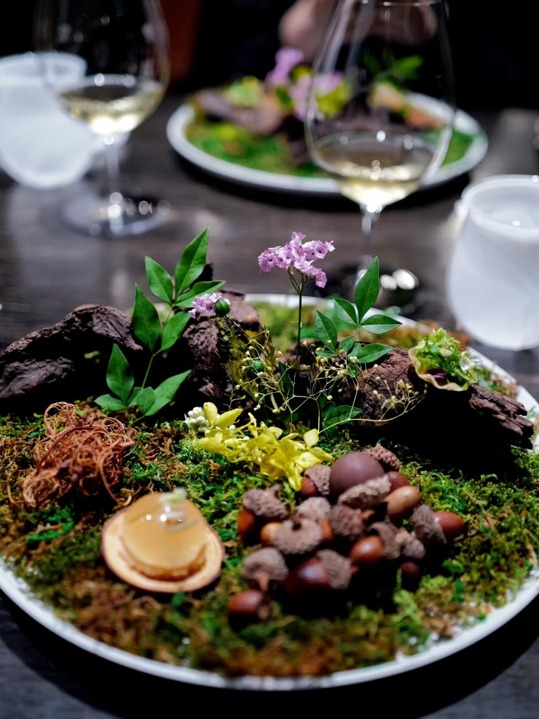 🍃开胃菜:像个森林缩影,有花草、苔藓、木头、植物,小石头,像随时会出现松鼠🐿️作为前菜开胃小品,上来就已经颜值超高,味道清新有新意!