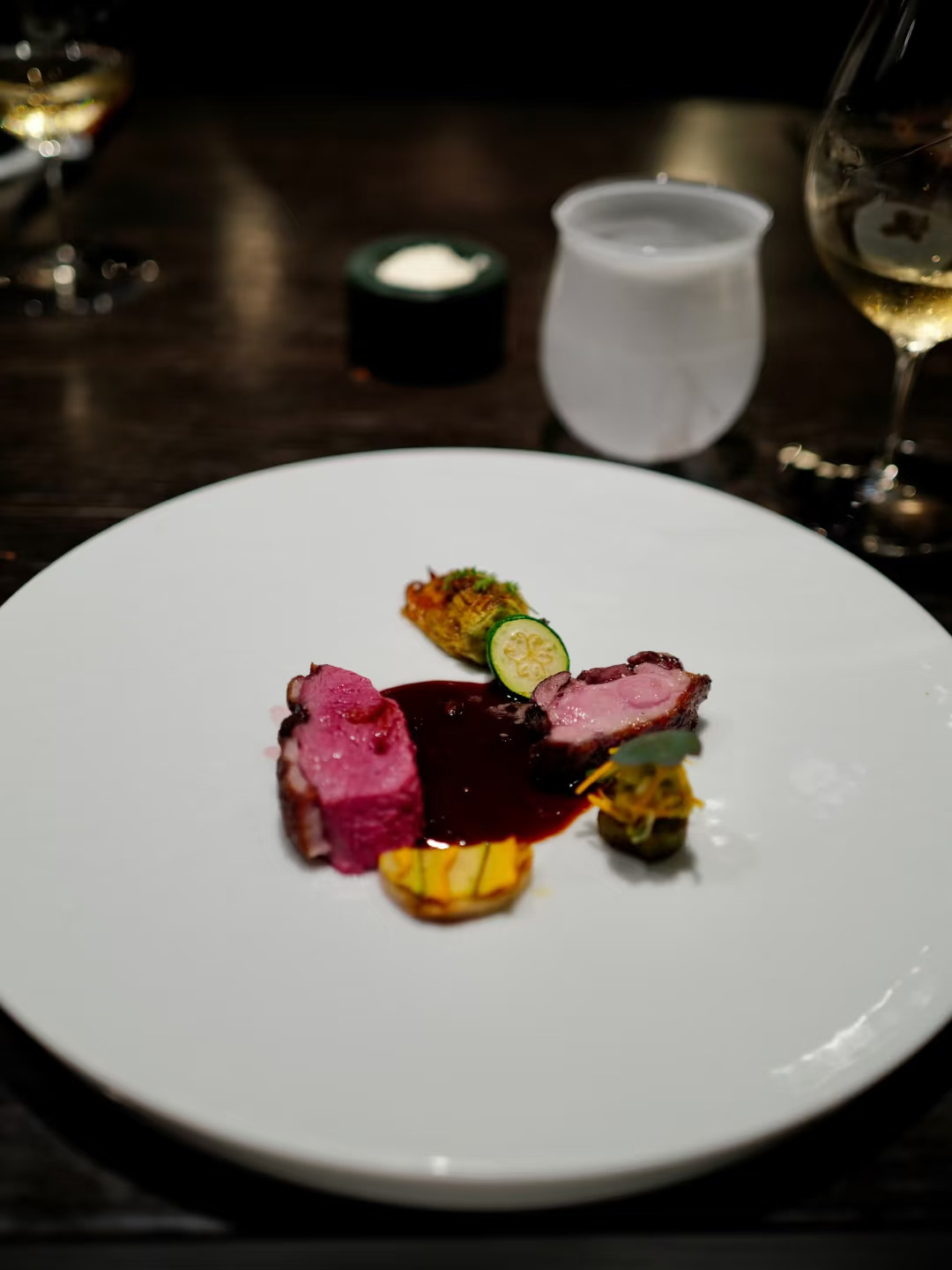 🥩肉料理:鸭肉鲜嫩多汁不柴 ,花椒酱汁也是个很大的创新!搭配的刚刚好.