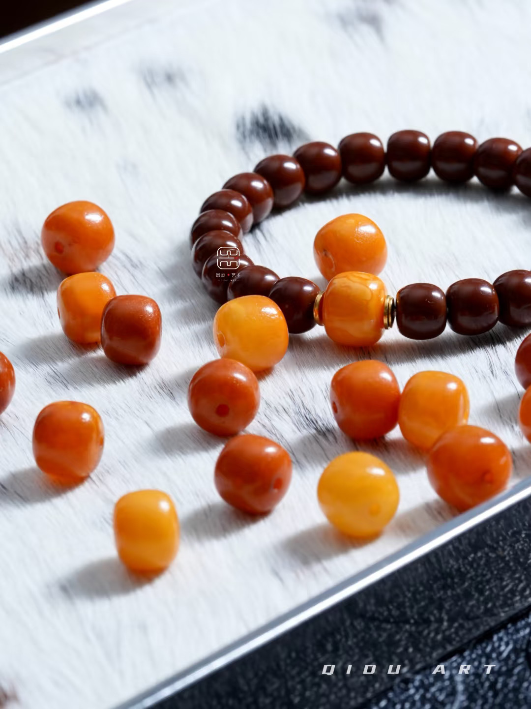 ㅤㅤㅤㅤㅤㅤㅤㅤㅤ 好绝的一组渐变橘子海 🍊 配猴头真的是一绝 冷棕色猴头➕暖橘蜜蜡🟤🟠 ——绝佳的反差感[色色R] 尺寸12+mm 一两张的价格太香了!