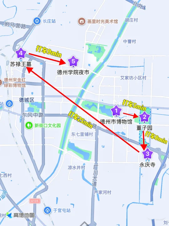 德州博物馆→董子园→永庆寺→苏禄王墓→德州学院夜市