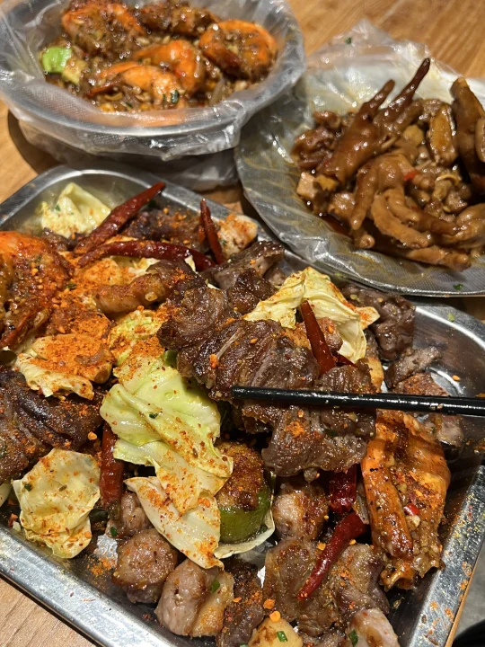 牛肋条、虾滑、牛油烤的滋滋冒油,口口爆汁!