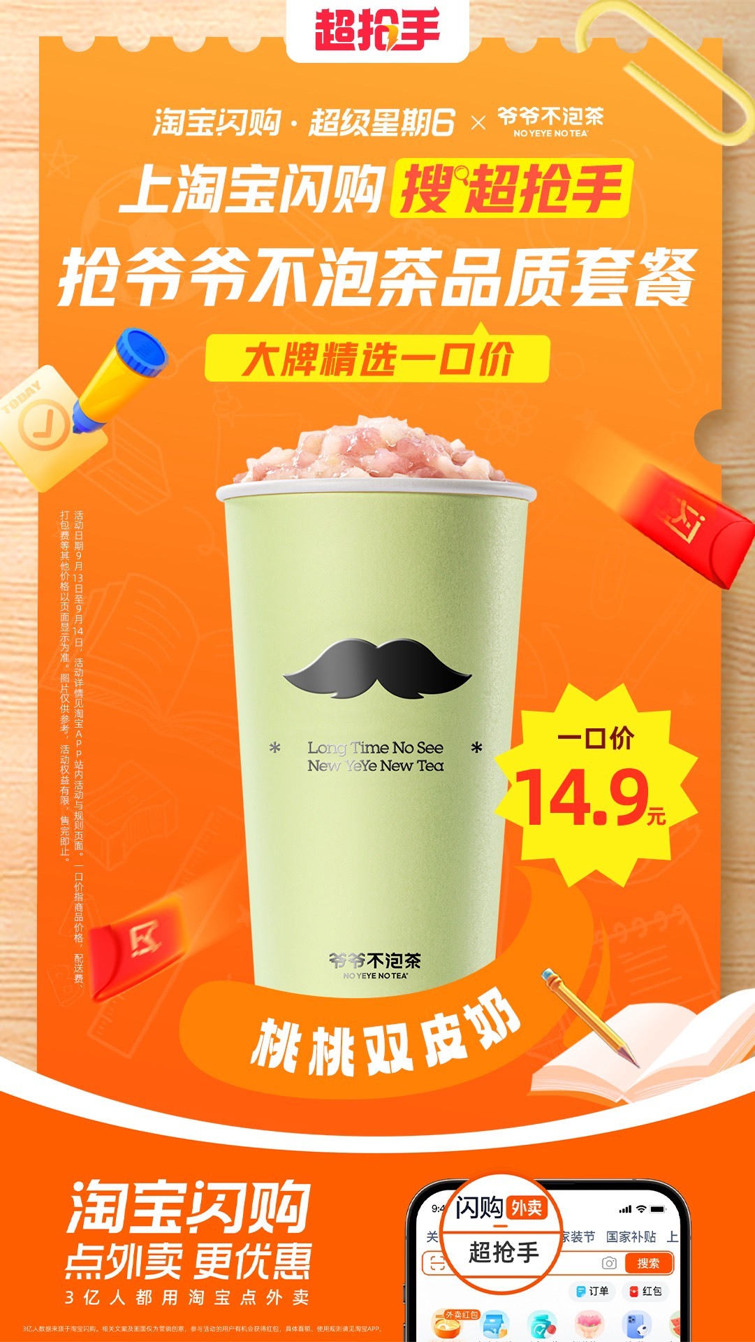 姐妹们!周日下午茶不知道吃啥?快来康康淘宝闪购超抢手的神仙组合——上淘宝闪购搜超抢手,大牌精选一口价,品质套餐5折起!爷爷不泡茶的桃桃双皮奶只要14.9元起,星巴克的双杯冰红茶拿铁36.9元起!这个价格我对比了多个渠道,真的是超级划算,下午睡醒来杯冰拿铁,周末在宿舍追剧配双皮奶,这才是校园生活的正确打开方式~快