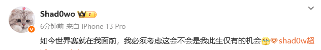 shad0w:世界赛就在面前,必须考虑是否是我此生仅有的机会