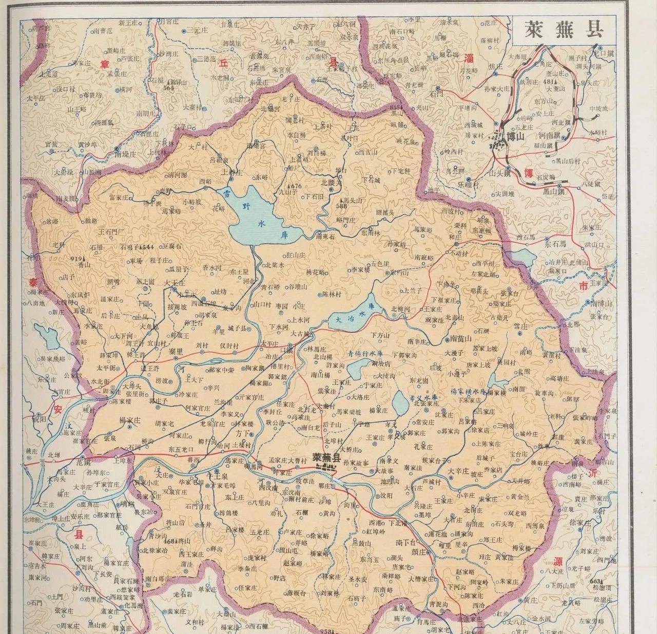 这是莱芜县1964年地图 1958年泰安专区撤销,莱芜县划归济南市,1961年恢复泰安专区,莱芜县复归泰安专区。 从1964年到1983年,这二十年的时间里,莱芜的行政区划变化不大。至1982年,莱芜县共辖15处人民公社。 1982年矿山公社改为城关镇,莱芜县辖1个镇和14处公社。 1983年莱芜撤县设立县级莱芜市,辖城关镇和14处人民公社。 1984年4月撤销人民公社,莱芜市辖15个办事处。 1985年10月,办事处改乡镇,全市辖1个办事处、15个镇、12个乡。 1990年设副县级的莱钢办事处,同时将新泰市的寨子、沂源县的黄庄两个乡镇划归莱芜市莱钢办事处。莱芜由此增加了两个乡镇的面积。 1992年莱芜市升格为地级市,面积与县级莱芜市相同,全市设莱城区和钢城区两个区。 2018年莱芜市并入济南市,原莱芜市范围设济南市莱芜区和济南市钢城区。莱芜区辖8个街道、7个镇,钢城区辖5个街道。