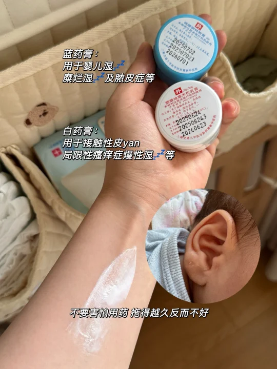 湿💤克星一个月的时候就起过了,当时没注意,也不敢乱用就用碘伏擦擦 后来反反复复,不放心去了新华🏥 才知道原来还有干性湿枕 这个蓝白是他们自主研发的一套💊膏,亲测有效!