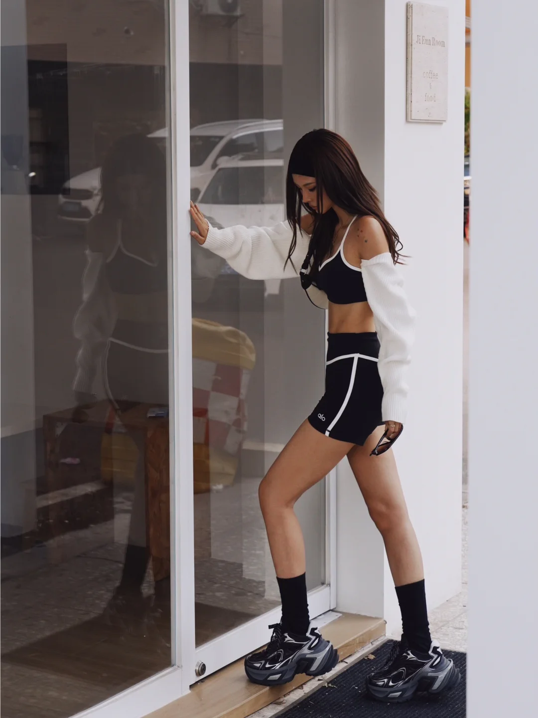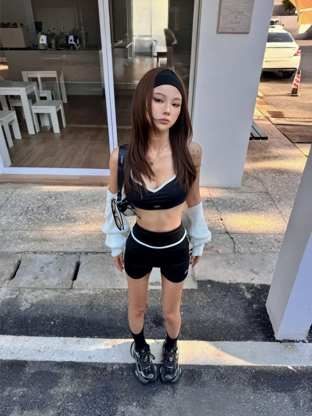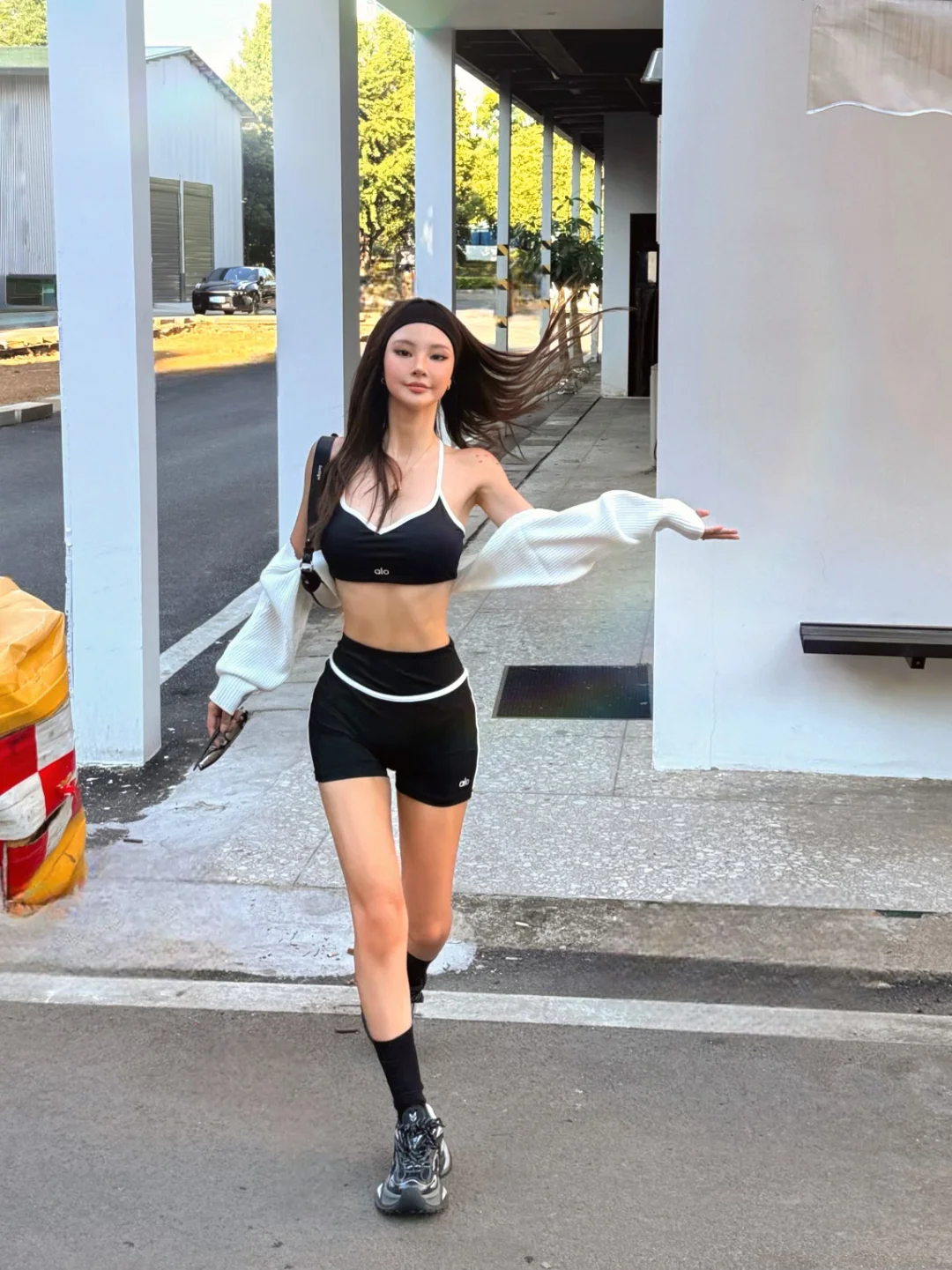 状态好的时候整个人都在发光! 收拾自己+晒太阳应该是最快的状态重启办法吧 有时候就是洗个脸、换身舒服的衣服,那种“把自己打理好”的掌控感一来,坏情绪瞬间就驱散了,什么事儿都不是事儿~ 我很喜欢海莉身上不管别人“死”活的稳定感 今天的inspo就来自她~ 她的街拍穿搭都很白女 简约精致的城市运动感 很hot 但不会太过 所以我穿了套简单的瑜伽服 搭配了一双OGR 水狼蛛 厚底的设计可以拉长小腿 鞋子流动的科技线条感又消融了整体look的运动感 会更时尚摩登一点✨