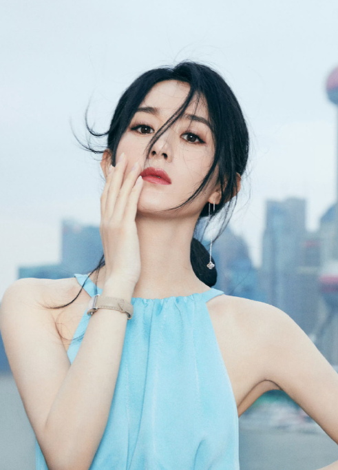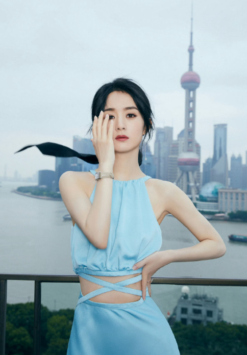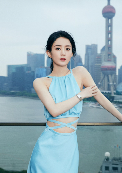 赵丽颖的水蓝色挂脖裙,这妆造超可以的!