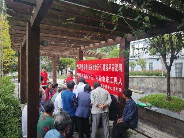 为进一步深化平安建设工作,切实增强群众法治意识和安全防范能力,营造安全、稳定、和谐的社会环境,9月16日,汉阴县铁佛寺镇中心卫生院办公室协同公卫科工作人员深入辖区集镇社区人员密集场所开展以“平安建设、扫黑除恶、防范电信诈骗”为主题的集中知识宣传活动。