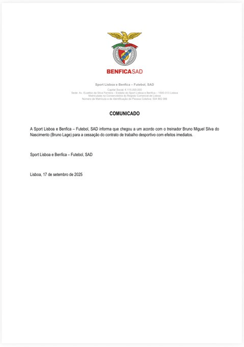 虎扑09月17日讯本菲卡官方宣布:主帅布鲁诺-拉热下课。