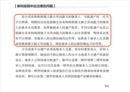 [种草R]《民法典》第1130条第2款规定,在法定继承(无遗嘱)的情况下,“对生活有特殊困难又缺乏劳动能力的继承人,分配遗产时,应当予以照顾。”,所谓应当,意思是,如果符合条件,在绝大多数的情况下,都应当多分。