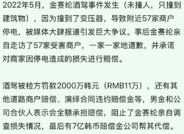 8个月后,金赛纶被法院判处2000万韩元(折合人民币约11万)罚款,加上商户的赔偿款,共计7亿韩元。