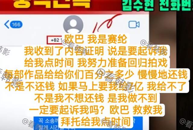 无奈之下,金赛纶曾向金秀贤发送短信求救。在短信中,用卑微的口吻央求金秀贤,“拜托了,请给我一些时间”。