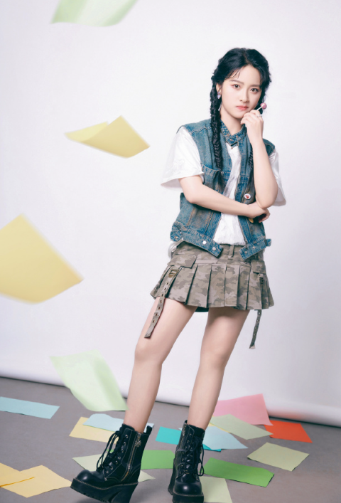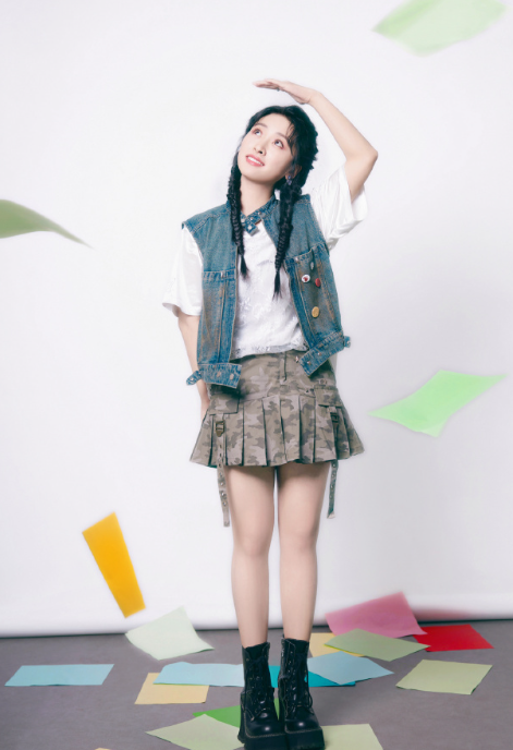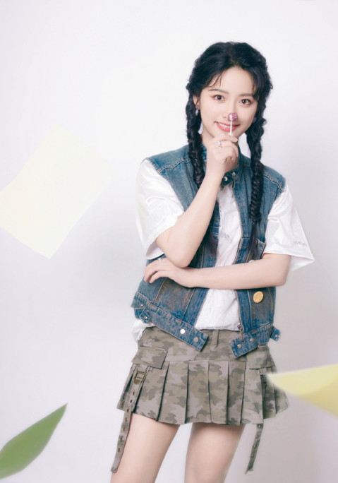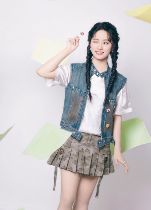 沈月牛仔马甲迷彩百褶裙,是不是超可爱的?