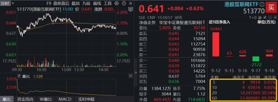 港股AI核心工具——港股互联网ETF(513770)早盘场内价格一度涨逾2%,午后回落收涨0.63%,全天成交额8.9亿元,交投活跃。