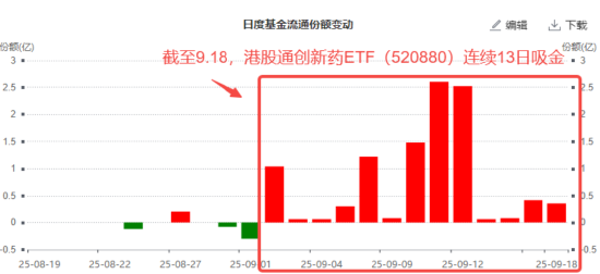 近期行情波动加大,低吸资金持续涌入。数据显示,截至9月18日,520880已连续13日吸金,金额合计超6.7亿元。兴证全球策略首席张忆东日前提示,9月份或是创新药布局良机。