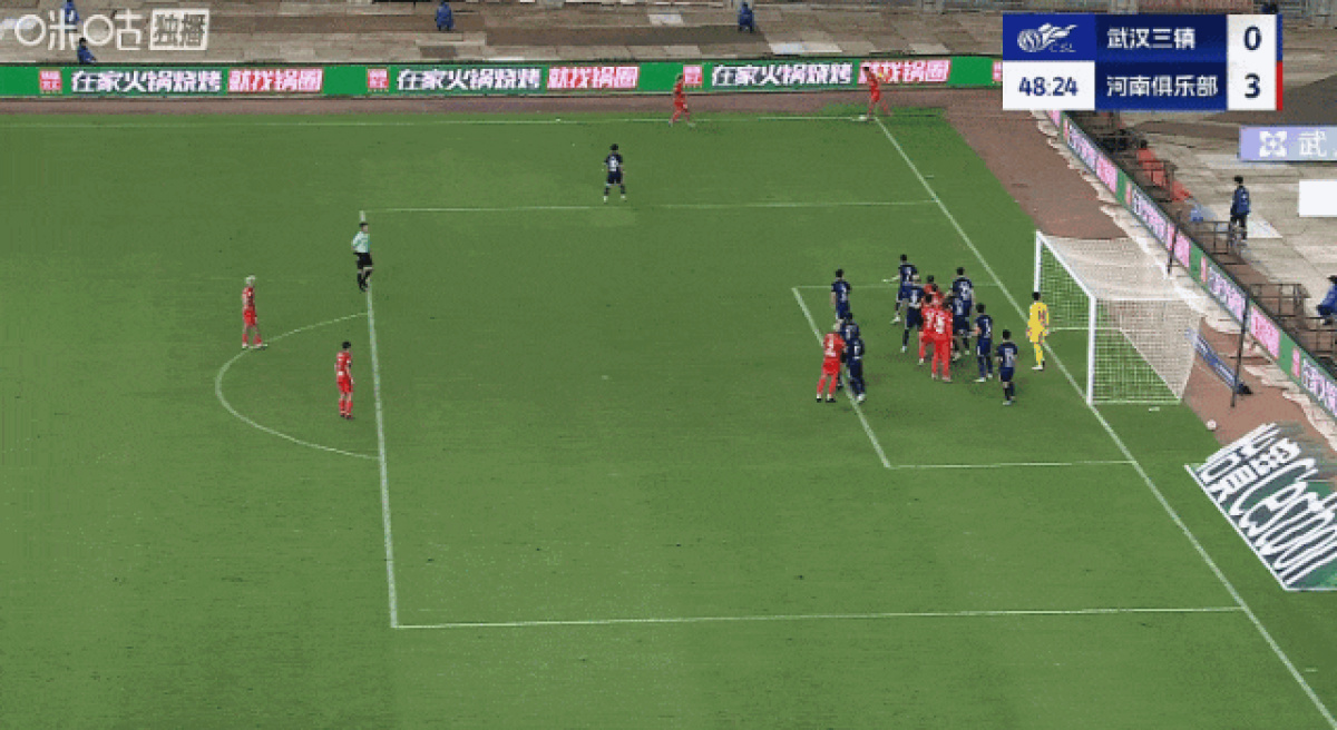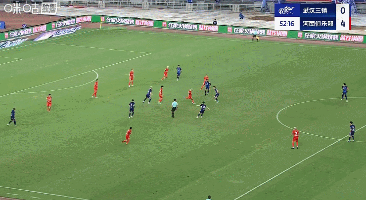 易边再战,仅仅4分钟,河南队再次利用角球建功,卢永涛头球破门完成梅开二度。随后,手握3球优势的河南队开始稳守反击,武汉三镇面对密集防守无计可施,越踢越急躁。第52分钟和第56分钟,河南队打出两次教科书般的快速反击,由阿奇姆彭和卡多索相继破门。8分钟内打进3球,河南队早早终结了比赛悬念。