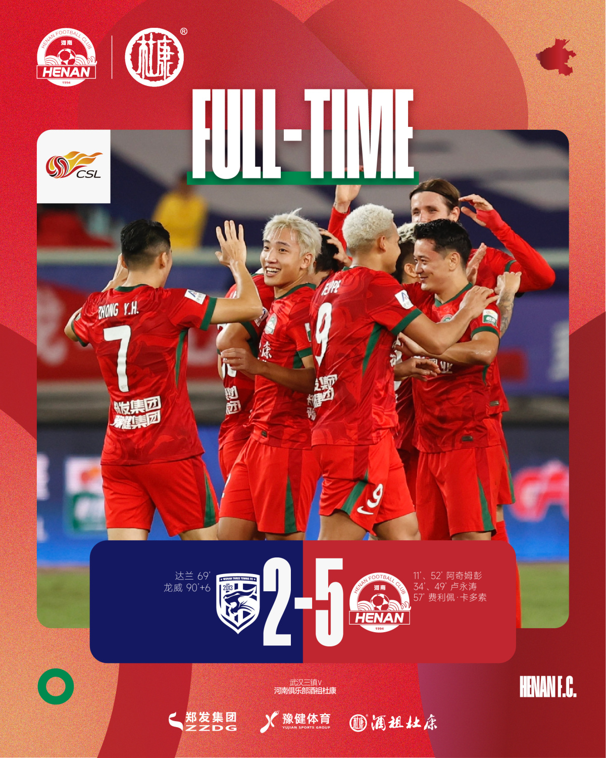 不过,大比分领先后河南队稍有松懈,随后被武汉三镇连扳两球,最终河南队以5:2收获一场大胜。事实上,除了5粒进球,河南队本场还浪费了至少5次绝佳得分机会,钟义浩、黄紫昌、阿奇姆彭均曾错失近乎空门的机会。值得一提的是,高举进攻大旗的拉莫斯让外界看到了更多变化,在传统的阵地进攻之外,河南队的定位球和反击同样犀利。