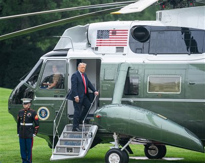 9月16日,在美国首都华盛顿,美国总统特朗普登机离开白宫,启程对英国进行国事访问。新华社记者胡友松摄