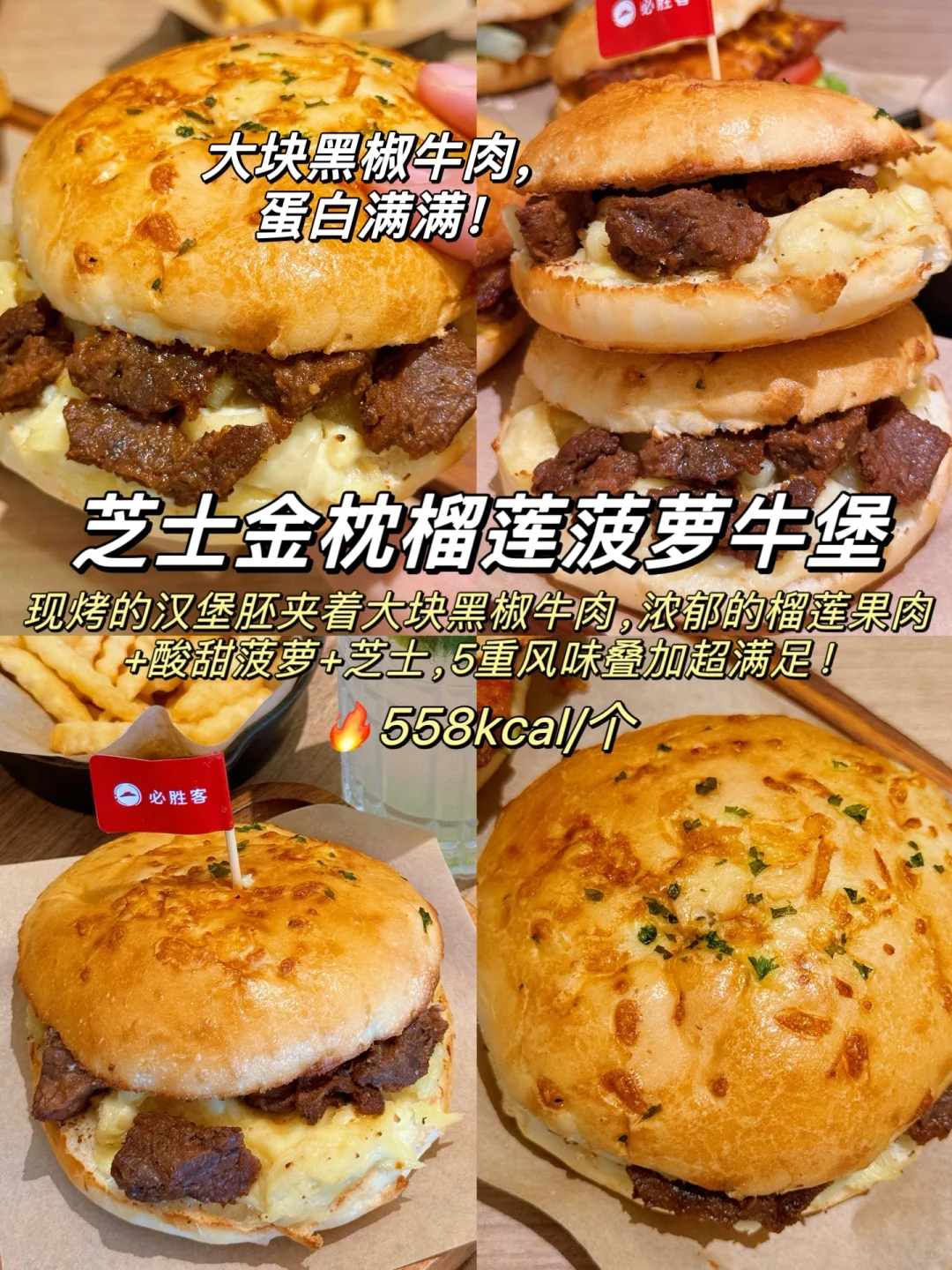 ✔️芝士金枕榴莲菠萝牛堡🔥558kcal