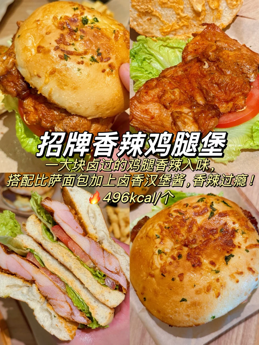 一大块卤过的鸡腿香辣入味,搭配比萨面包加上卤香汉堡酱,香辣过瘾!
