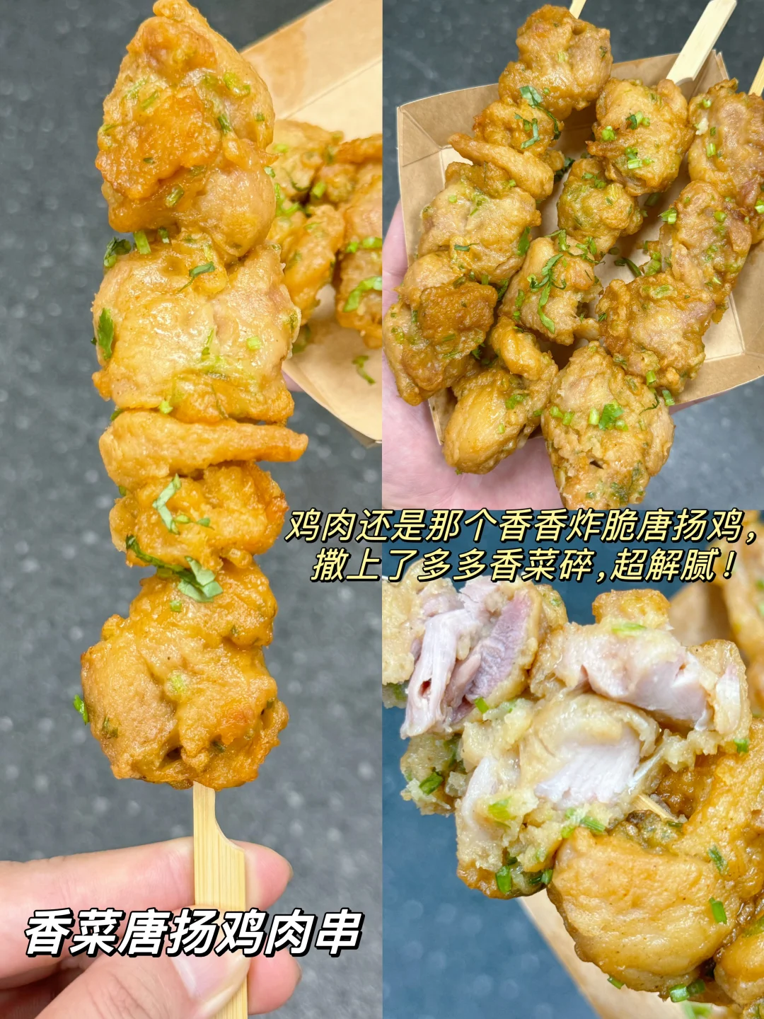 ✅香菜唐扬鸡肉串:鸡肉还是那个香香炸脆唐扬鸡,撒上了多多香菜碎,超解腻!