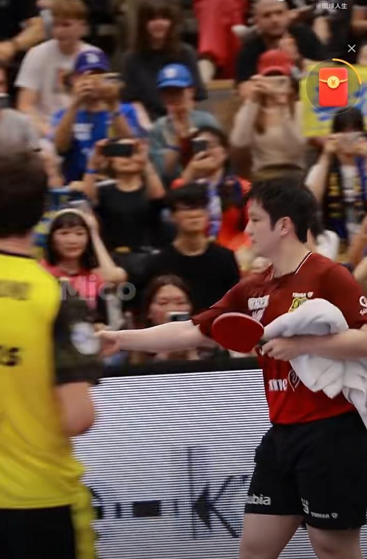 樊振东德国杯获得首胜! 今日凌晨两点多,德国杯1/8决赛中,樊振东首盘以3-0战胜苏迪[赞]。 最终,樊振东所在的萨尔布吕肯俱乐部3-0击败了多特蒙德俱乐部,成功晋级德国杯8强。 赛后多特蒙德俱乐部的教练请求和樊振东合影,东哥答应了[笑哭]。 这教练再不合影以后也真是没机会了,因为这个队被淘汰了[憨笑]。 9月14日比赛结束,大家还在击掌的时候,就是这个教练拉着东哥让他给球衣签名,东哥说等会吧等一会儿吧,这回又要合照[捂脸]。 感觉这教练今天来的目的就是为了合影,其他都不重要[偷笑]。 恭喜东哥德国杯开门红,下场比赛要到10月5号见啦。 唉,我们心爱的东哥成了别人的队员,樊振东的名字后我无法加上红旗,好难受[泣不成声]。