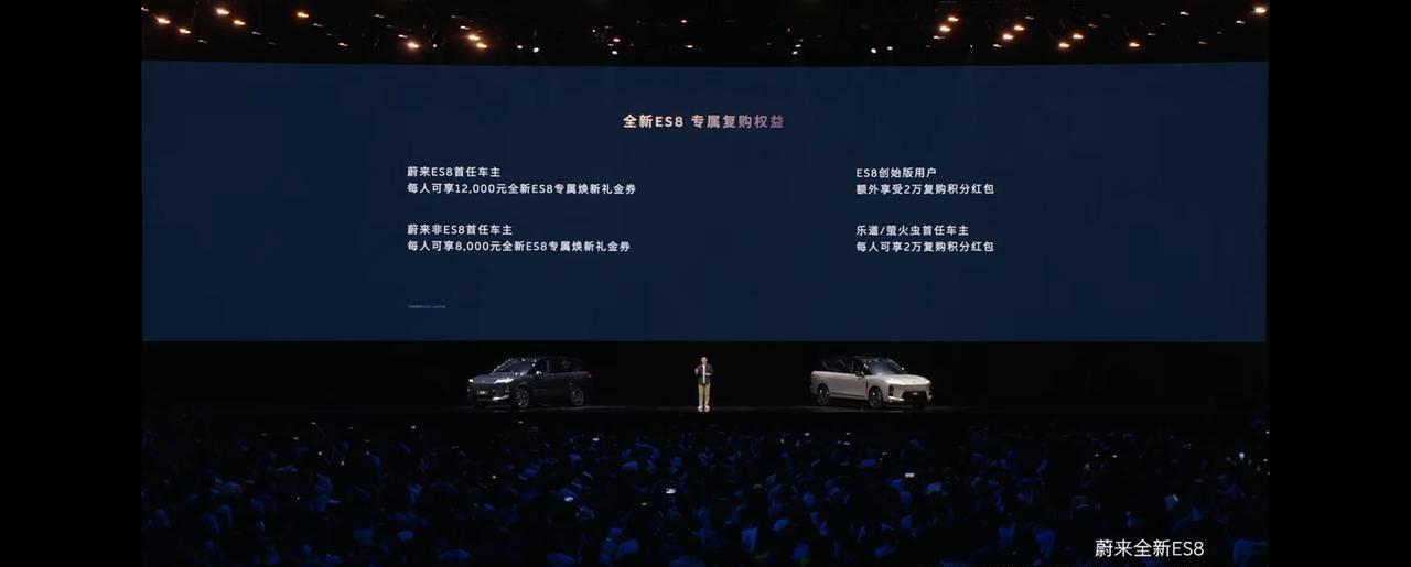 首席体验官莫文蔚来了,现场演唱经典歌曲,和蔚来这对CP组合太搭了。一起来的还有全新蔚来ES8,三款版型的价格和配置大家看图片,还有丰富的购车权益和复购权益。 1.六座行政豪华版,整车购买 40.68 万起,BaaS 方案 29.88 万起 2.六座行政签名版,整车购买 44.68 万起,BaaS 方案 33.88 万起 3.七座行政豪华版,整车购买 40.68 万起,BaaS 方案 29.88 万起 可以说是一台很有温度的车,不只是配置丰富,斌哥现场还讲述了和车主一起开它的故事。9月21日开启交付,今晚9点30之前依旧享受5000预定金抵1万购车款的福利,喜欢的小伙伴小手点起来啦。 斌哥还透露蔚来产能已经提到 4 万台,如果产能不满足还能补政策退坡差价。我们之前也拍了静态视频,可以看视频沉浸式感受下。【来自懂车帝车友圈】