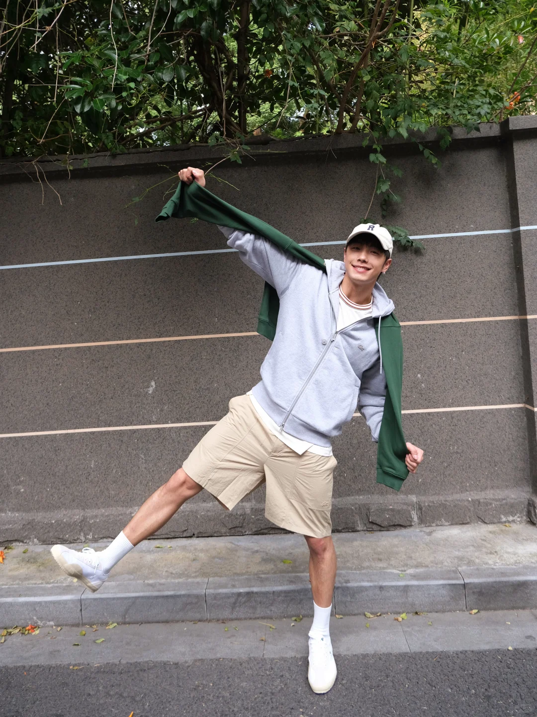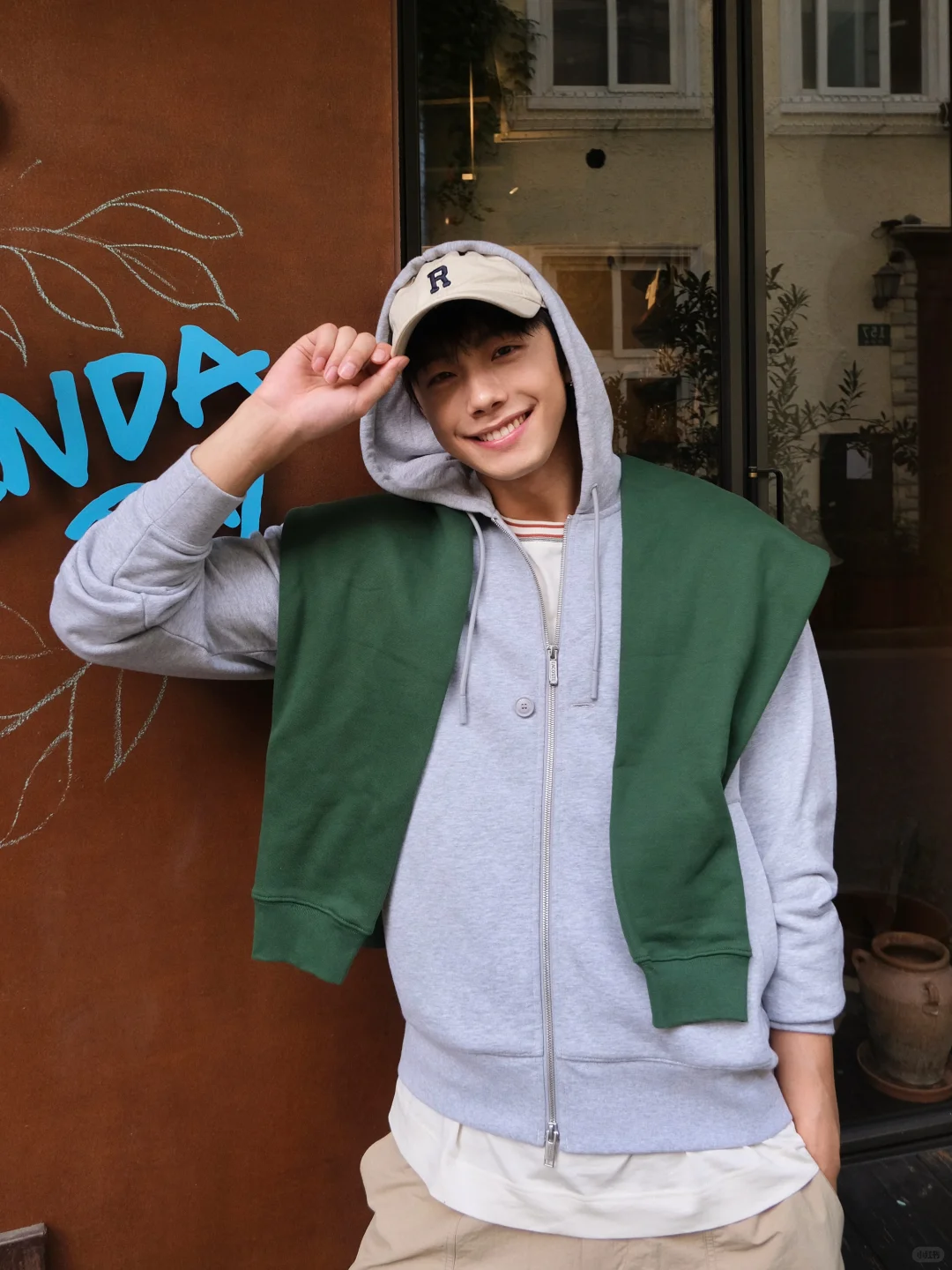 周末久违地和朋友去了下午茶! 咔嚓咔嚓拍了一组📷 我最近频繁穿这件卫衣连帽外套 1 简单牛仔裤+卫衣外套+鸭舌帽 2 基础卡其色中裤+卫衣外套+绿色卫衣当点缀(可披着可放下) 怎么搭配都好看 又适合秋天🍂