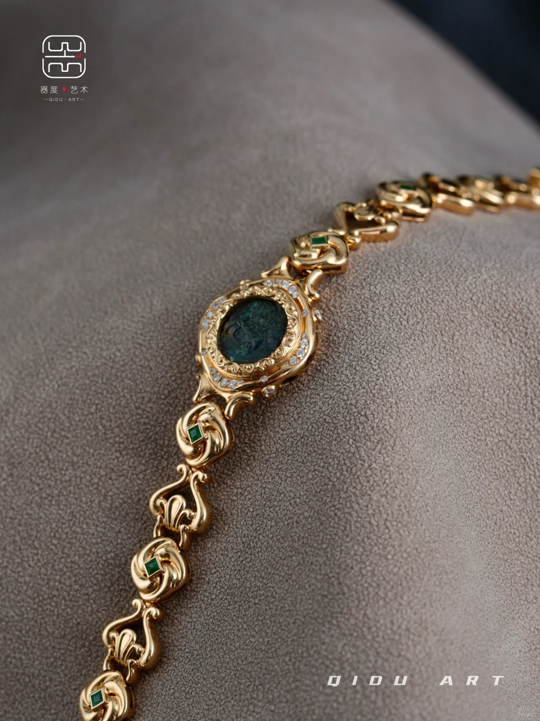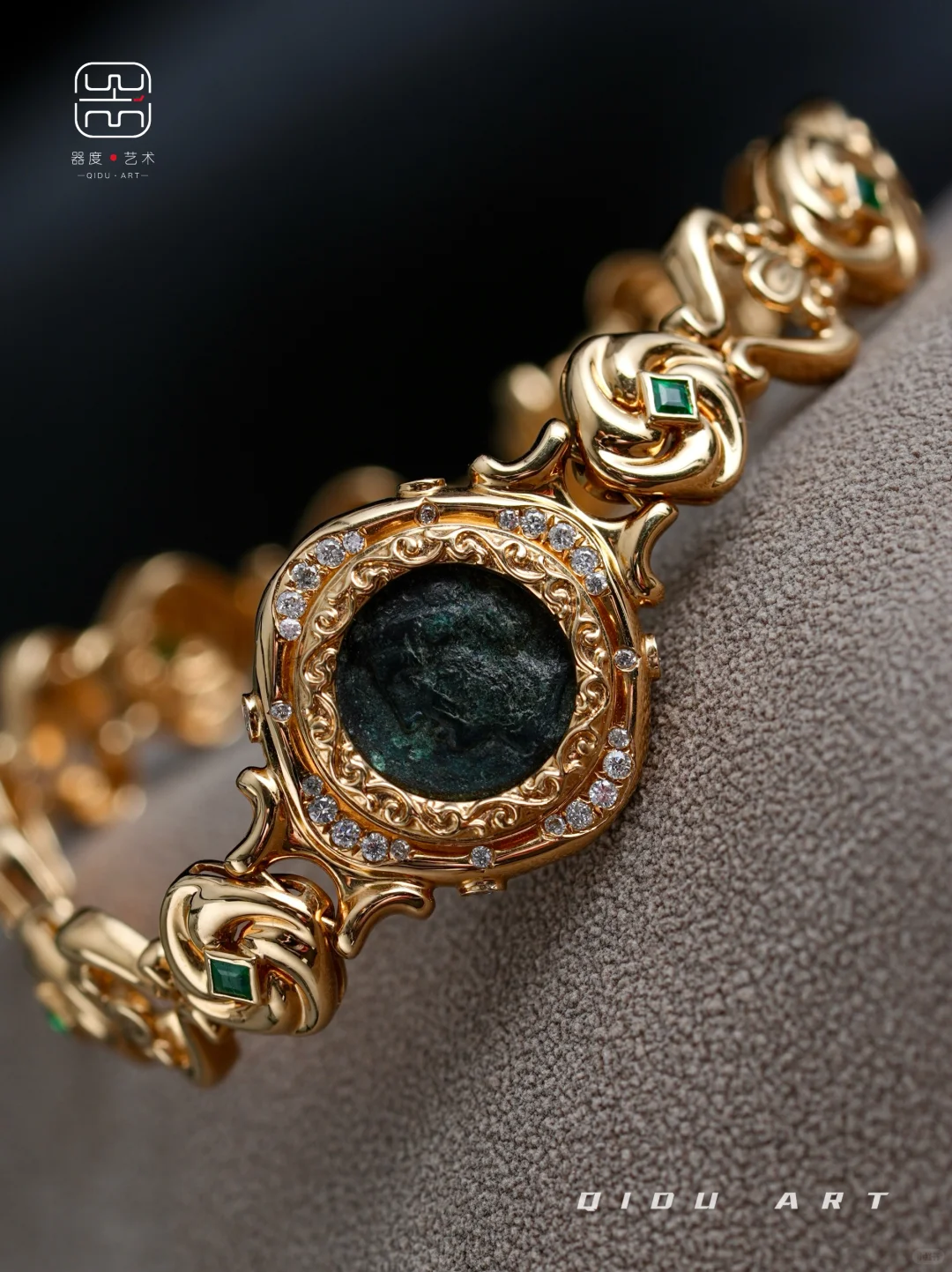 一枚发行于—— 公元前375—前325年以弗所的古希腊铜币, 历史和时间把它刻画包浆, 正面是爱神阿芙罗狄忒/阿尔忒尼斯头像 反面是超可爱的小蜜蜂 币周一圈蔷薇藤蔓 手链延伸了爱心的设计 是一场现在时和几千年前的浪漫对话 每一款都是你的𝓾𝓷𝓲𝓺𝓾𝓮