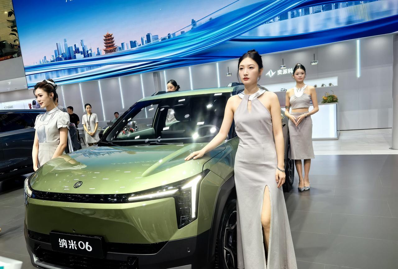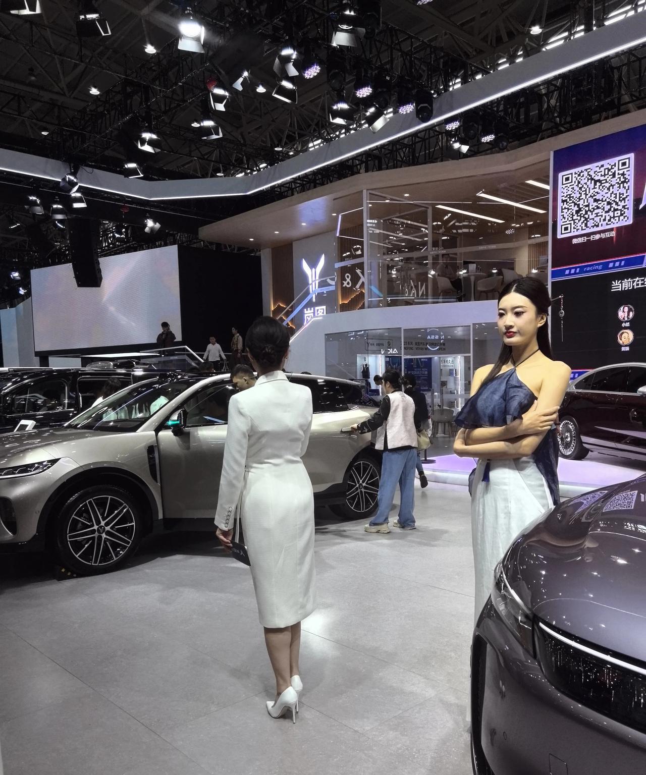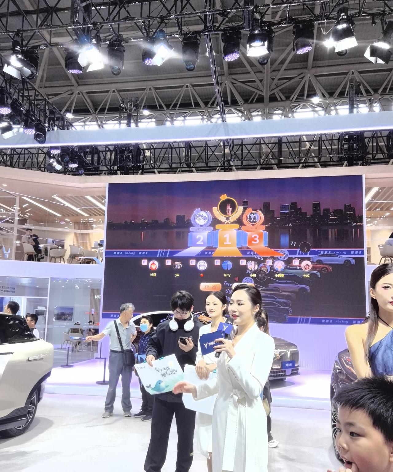 比如,今天在武汉国际博览中心,我不仅欣赏到了一款款时尚、精美的新汽车,比如奥迪Q6,岚图梦想家,华为鸿蒙汽车。 还欣赏到了身材婀娜多姿、眼睛水汪汪、颜值爆表的美女车模,真是养眼,养心。 参展商们为了宣传自家产品,又是免费送奶茶,送爆米花,又是免费送冰箱贴,玩偶,保温杯等。 还有参展商为了证明自家电车的电池性能优良,竟然把车子的电池通上电,泡在一个金鱼缸里,缸里的金鱼在快乐地游来游去 。 还有参展商给汽车穿上了粉色的,兔子造型的卡通毛绒外套,非常吸睛。 最有趣的是大众汽车公司,还让看展游客玩投壶游戏,投中了可以领到不同档次的奖品。 他们为了企业的生存,真是拼了,令人佩服。 今天看车展,我虽然没有买车,但是看看帅哥美女、吃点免费的小吃,顺便散散步,锻炼一下,不亦乐乎? (下图1至图6:在车展上拍的照片) #人生10万公里#