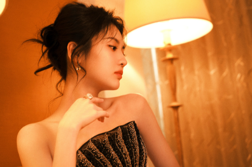 张慧雯的暖色大片,精致扎发抹胸长裙还不错!