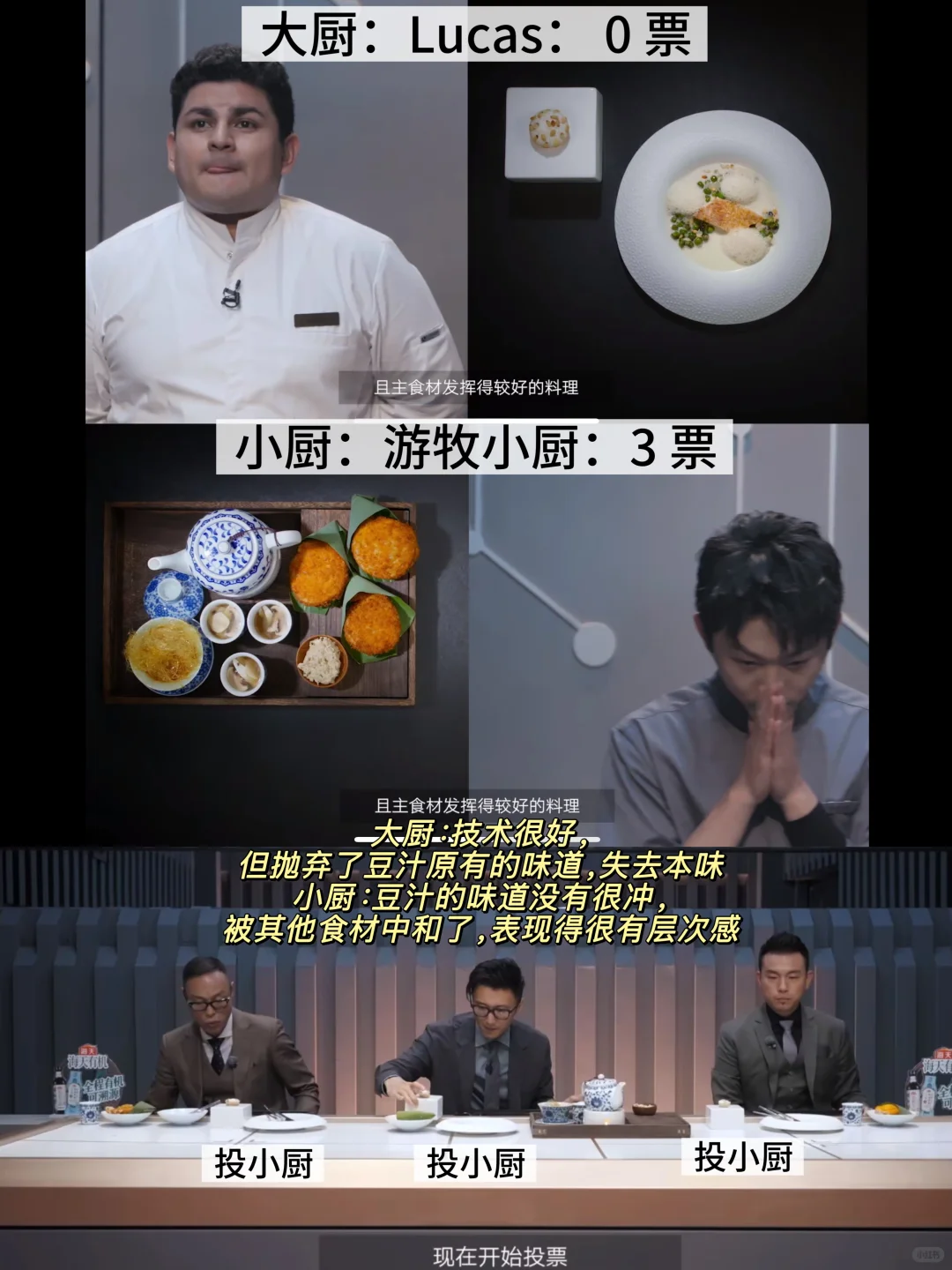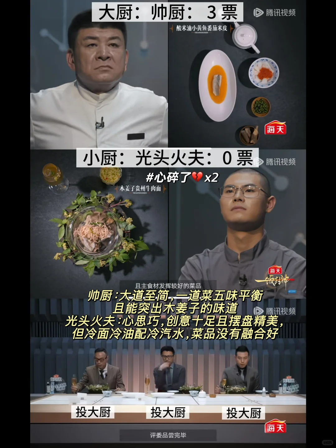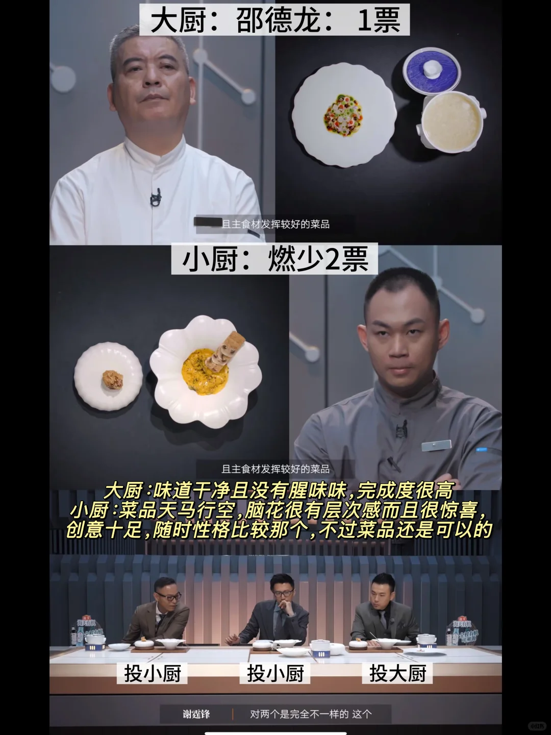 等了一个礼拜终于又来了,【一饭封神】真的太上头了,追完第二集感觉我家的锅都按捺不住了!🔥 第二集大厨和小厨的battle简直让人攥紧拳头看完全集,完全没尿点(有的部分节目自己快进了🤣) 整理的这4场对决是zui戳我的,非常值得回味,大小厨之间的对决, 有的菜赢在「稳」:杨艳彬把刺龙芽的苦涩变成点睛之笔,曾怀君的沙虫汤酸辣鲜甜全在线,黎子安的菌菇香直接勾得人咽口水…老派功夫的拿捏,一口就知道是功底! 有的菜赢在「野」:游牧小厨把豆汁的冲味中和得绝了,长沙小椒傲用红薯面玩出花!创意直接飙到天灵盖,看完只想喊「还能这么玩?」 最戳我的是评委的点评,刀刀精准,要么夸「五味平衡见真章」,要么怼「味道在打架」,三位老师专业互补,谢霆锋基本每次都可以精准点出问题(感觉挺服气的)👏、荣叔执着本味的样子真的很像家里的一些长辈👴、vicky老师更关注的味道平衡我觉得在这一集有更好的体会!食材打架VS五味和谐,差的是这层功力~ 追求“好吃”或许只要抓住一种突出的风味,把鲜香甜辣按照食物固有的方式呈现到最好即可!😋 但要做到balance,却得让酸、甜、苦、辣、咸各安其位,既不抢戏也不缺位,像一群默契的舞者踩准同一个节拍,其实后者的功力,藏在看不见的细节里。好吃的菜,果然得让人吃得舒服(其实看着也舒服)😌 哈哈哈哈哈,真的很好看呐,你们也刷,之后快来告诉我哪道菜最该封神?评论区battle起来!🥳