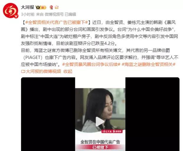 《暴风圈》辱华风波炸锅!全智贤遭抵制,品牌火速切割,网友怒吼:滚出中国!
